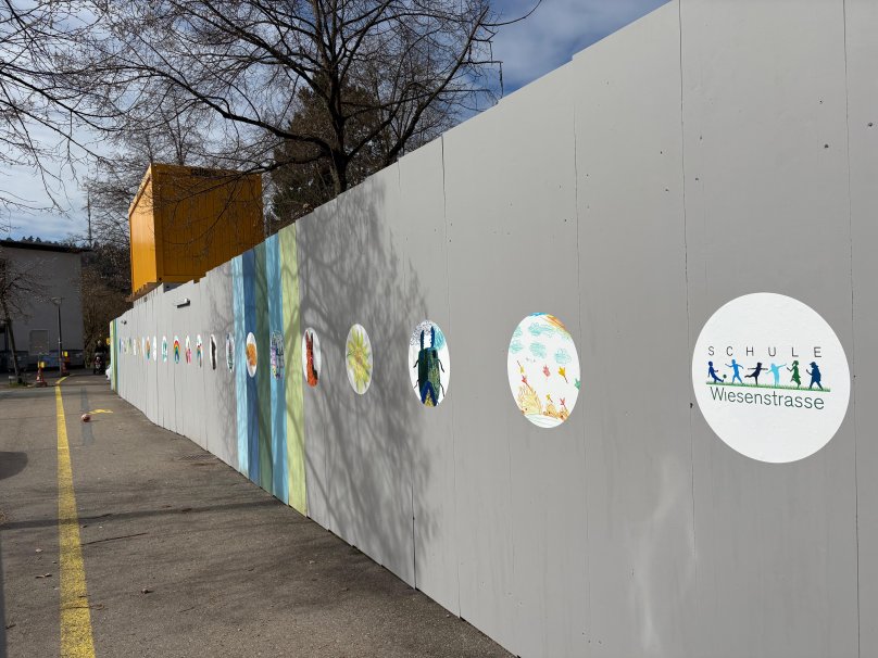 Die Bauwand der Baustelle auf unserem Pausenplatz wurde von kreativen Schüler*innen unserer Schule verschönert.